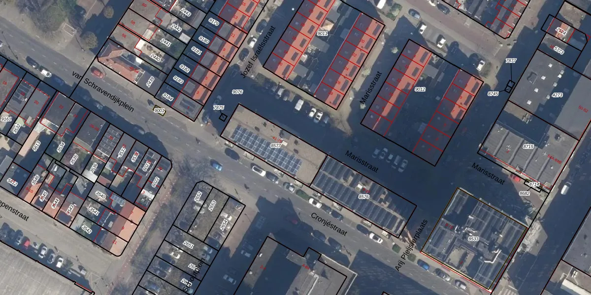Marisstraat 59 is gelegen op kadastraal perceel VDG00D8577. Deze kadastrale aanduiding is uniek en wordt gebruikt door het Kadaster om eigendomsrechten en andere zakelijke rechten vast te leggen. Het perceel maakt onderdeel uit van de kadastrale gemeente Vlaardingen.