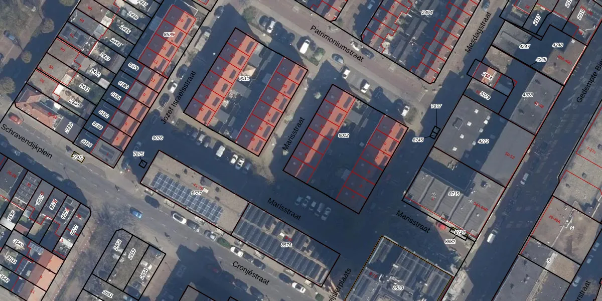 Marisstraat 8 is gelegen op kadastraal perceel VDG00D9012. Deze kadastrale aanduiding is uniek en wordt gebruikt door het Kadaster om eigendomsrechten en andere zakelijke rechten vast te leggen. Het perceel maakt onderdeel uit van de kadastrale gemeente Vlaardingen.