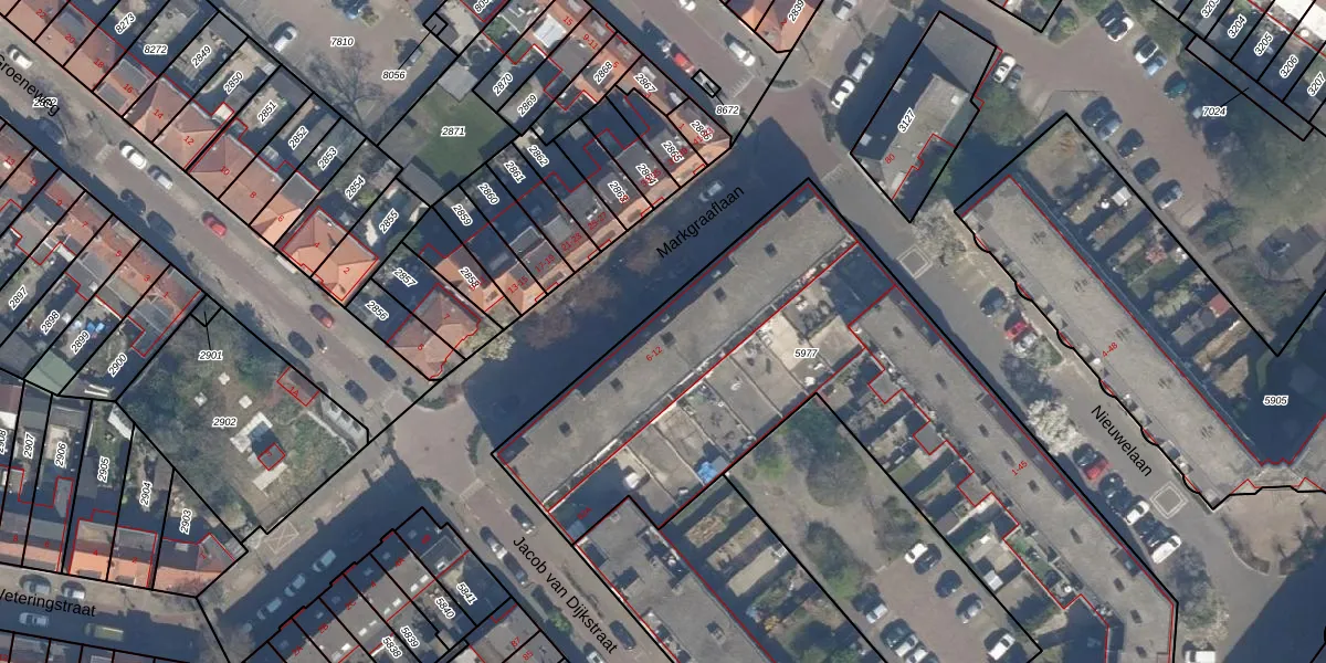 Markgraaflaan 6-F is gelegen op kadastraal perceel VDG00D5977. Deze kadastrale aanduiding is uniek en wordt gebruikt door het Kadaster om eigendomsrechten en andere zakelijke rechten vast te leggen. Het perceel maakt onderdeel uit van de kadastrale gemeente Vlaardingen.