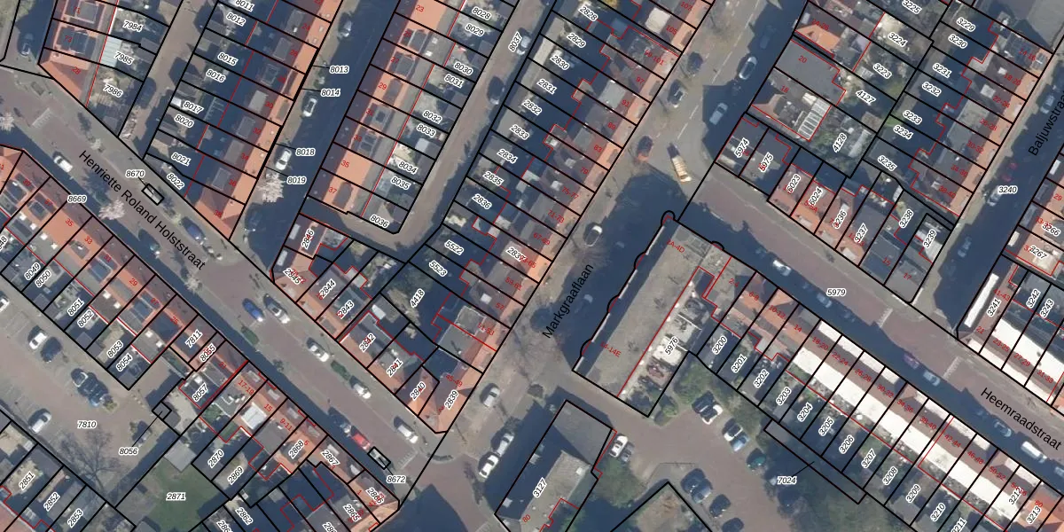 Markgraaflaan 65 is gelegen op kadastraal perceel VDG00D2837. Deze kadastrale aanduiding is uniek en wordt gebruikt door het Kadaster om eigendomsrechten en andere zakelijke rechten vast te leggen. Het perceel maakt onderdeel uit van de kadastrale gemeente Vlaardingen.