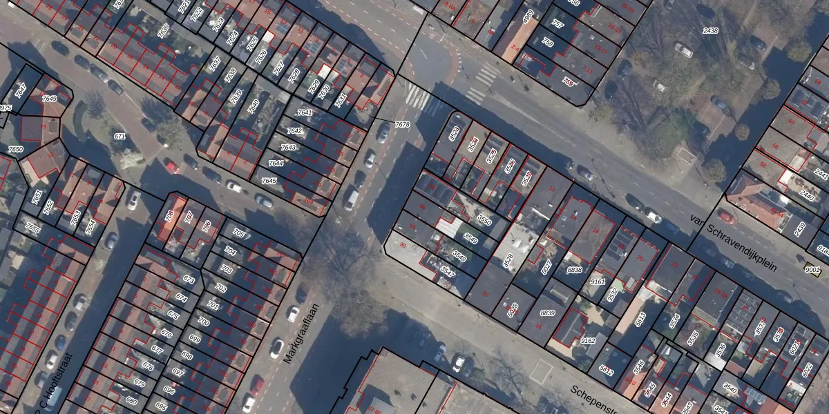 Gebruik de zoekbalk of klik op een perceel voor informatie over de adressen binnen dit perceel.