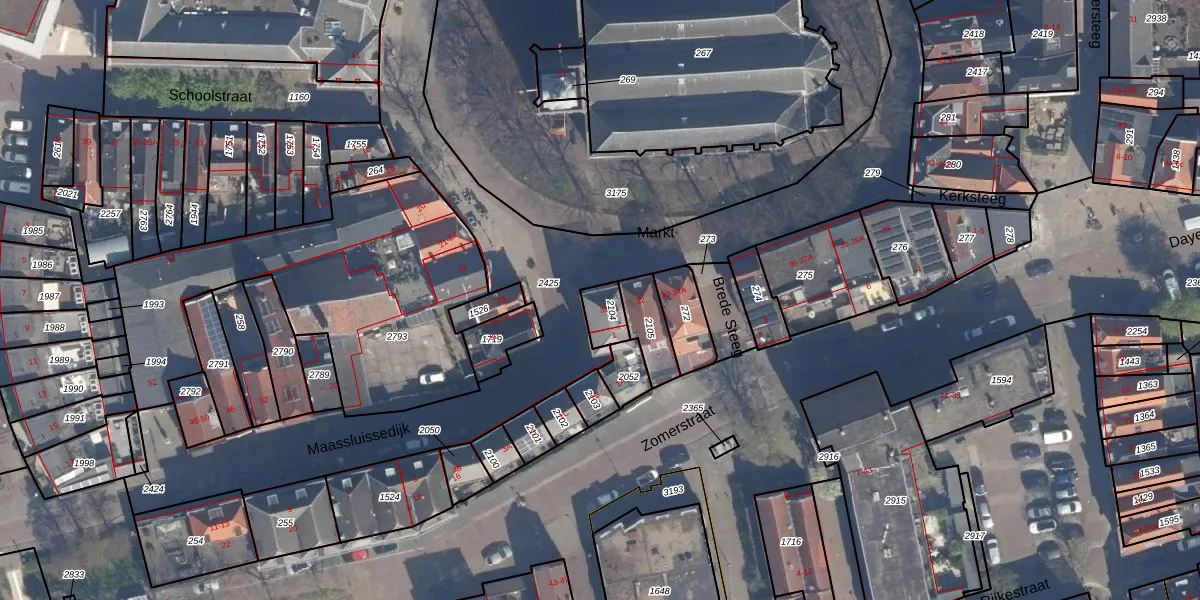Het perceel waarop Markt 31 staat heeft een oppervlakte van 65 m². Dit is een klein perceel. De perceeloppervlakte wordt geregistreerd door het Kadaster. Gedetailleerde informatie over de maten van dit perceel kunt u vinden in het rapport Kadastrale kaart met maatvoering van Markt 31.