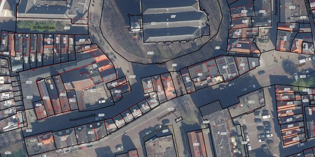 Het perceel waarop Markt 32 staat heeft een oppervlakte van 105 m². Dit is een middelgroot perceel. De perceeloppervlakte wordt geregistreerd door het Kadaster. Gedetailleerde informatie over de maten van dit perceel kunt u vinden in het rapport Kadastrale kaart met maatvoering van Markt 32.