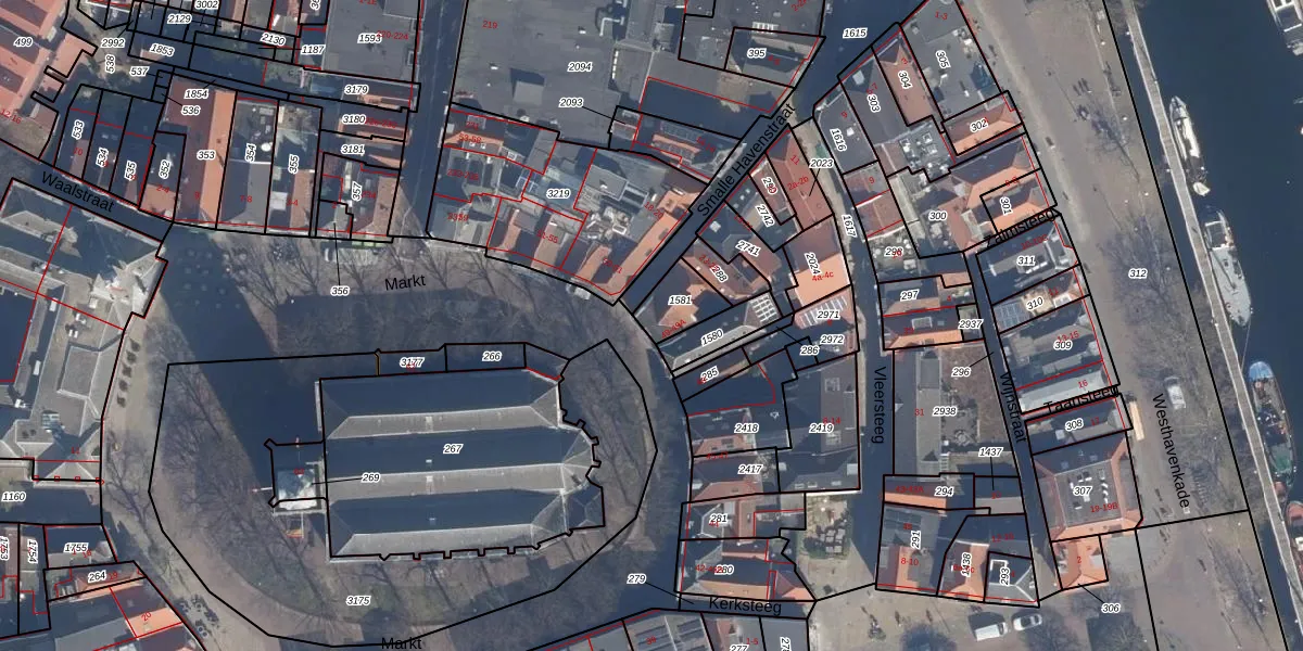 Het perceel waarop Markt 49 staat heeft een oppervlakte van 100 m². Dit is een middelgroot perceel. De perceeloppervlakte wordt geregistreerd door het Kadaster. Gedetailleerde informatie over de maten van dit perceel kunt u vinden in het rapport Kadastrale kaart met maatvoering van Markt 49.