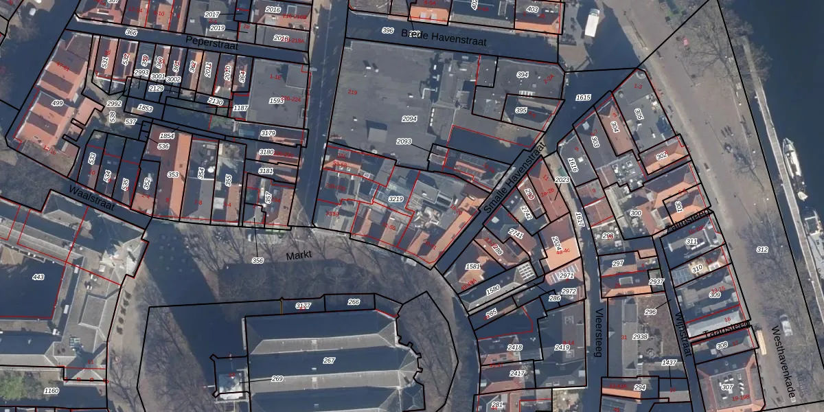 Het perceel waarop Markt 52 staat heeft een oppervlakte van 790 m². Dit is een groot perceel. De perceeloppervlakte wordt geregistreerd door het Kadaster. Gedetailleerde informatie over de maten van dit perceel kunt u vinden in het rapport Kadastrale kaart met maatvoering van Markt 52.