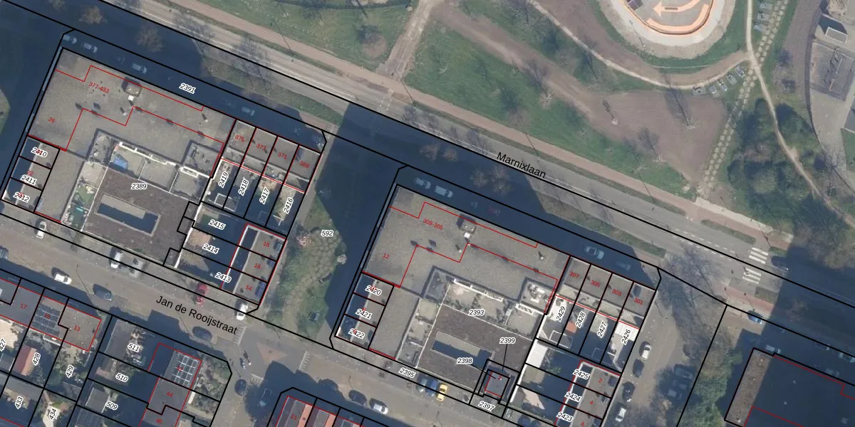 Het perceel waarop Marnixlaan 313 staat heeft een oppervlakte van 1470 m². Dit is een zeer groot perceel. De perceeloppervlakte wordt geregistreerd door het Kadaster. Gedetailleerde informatie over de maten van dit perceel kunt u vinden in het rapport Kadastrale kaart met maatvoering van Marnixlaan 313.