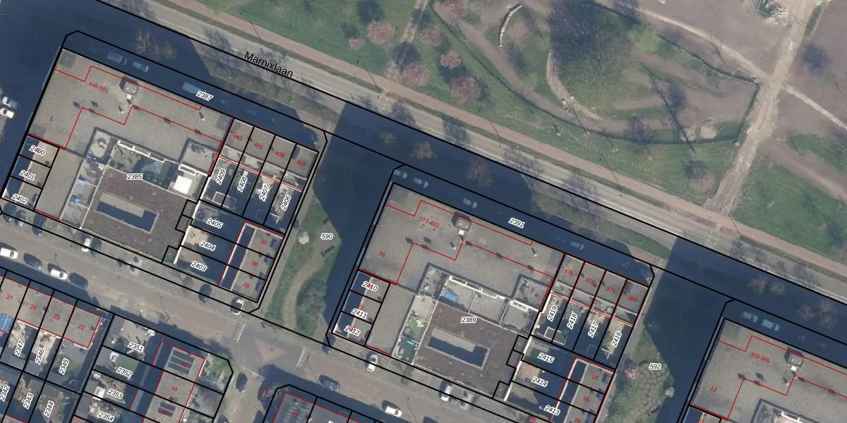 Marnixlaan 411 is gelegen op kadastraal perceel VDG00H2389. Deze kadastrale aanduiding is uniek en wordt gebruikt door het Kadaster om eigendomsrechten en andere zakelijke rechten vast te leggen. Het perceel maakt onderdeel uit van de kadastrale gemeente Vlaardingen.