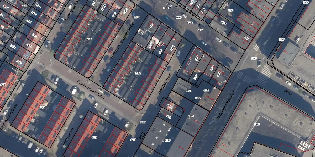 Het perceel waarop Mesdagstraat 23 staat heeft een oppervlakte van 989 m². Dit is een groot perceel. De perceeloppervlakte wordt geregistreerd door het Kadaster. Gedetailleerde informatie over de maten van dit perceel kunt u vinden in het rapport Kadastrale kaart met maatvoering van Mesdagstraat 23.