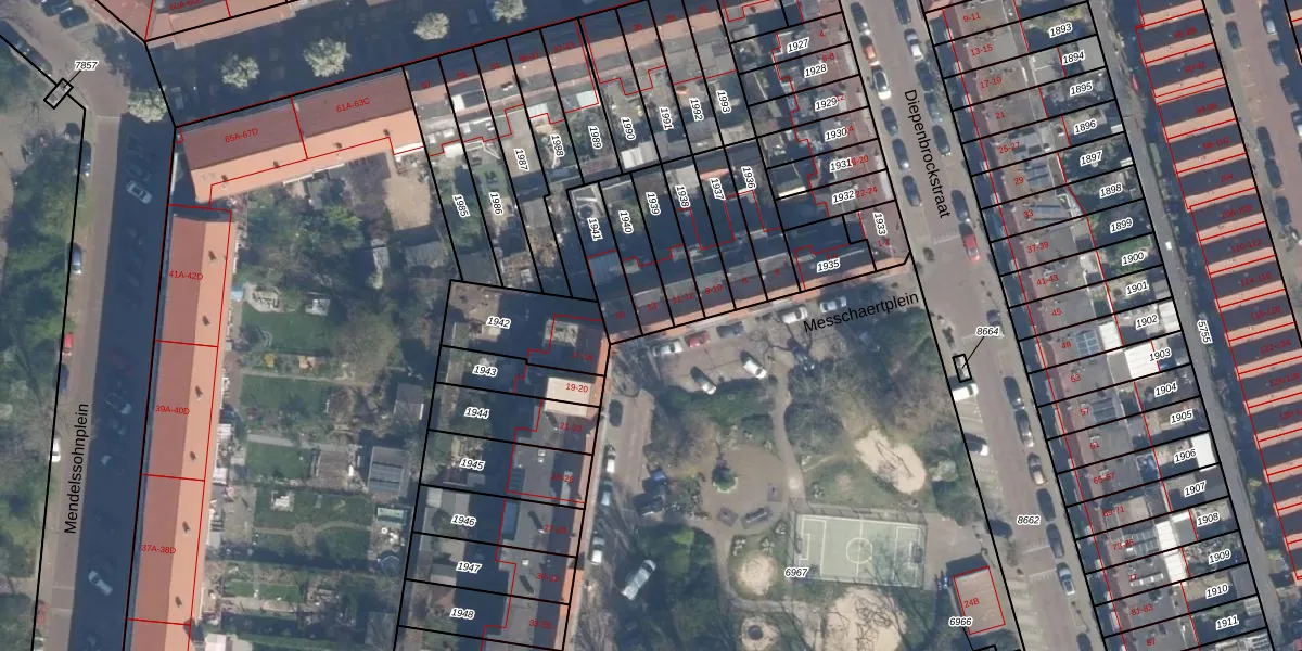 Gebruik de zoekbalk of klik op een perceel voor informatie over de adressen binnen dit perceel.