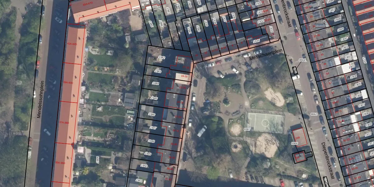 Het perceel waarop Messchaertplein 23 staat heeft een oppervlakte van 189 m². Dit is een middelgroot perceel. De perceeloppervlakte wordt geregistreerd door het Kadaster. Gedetailleerde informatie over de maten van dit perceel kunt u vinden in het rapport Kadastrale kaart met maatvoering van Messchaertplein 23.