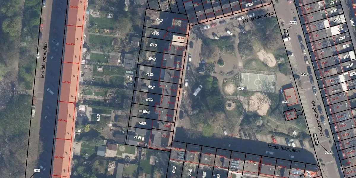 Het perceel waarop Messchaertplein 30 staat heeft een oppervlakte van 189 m². Dit is een middelgroot perceel. De perceeloppervlakte wordt geregistreerd door het Kadaster. Gedetailleerde informatie over de maten van dit perceel kunt u vinden in het rapport Kadastrale kaart met maatvoering van Messchaertplein 30.