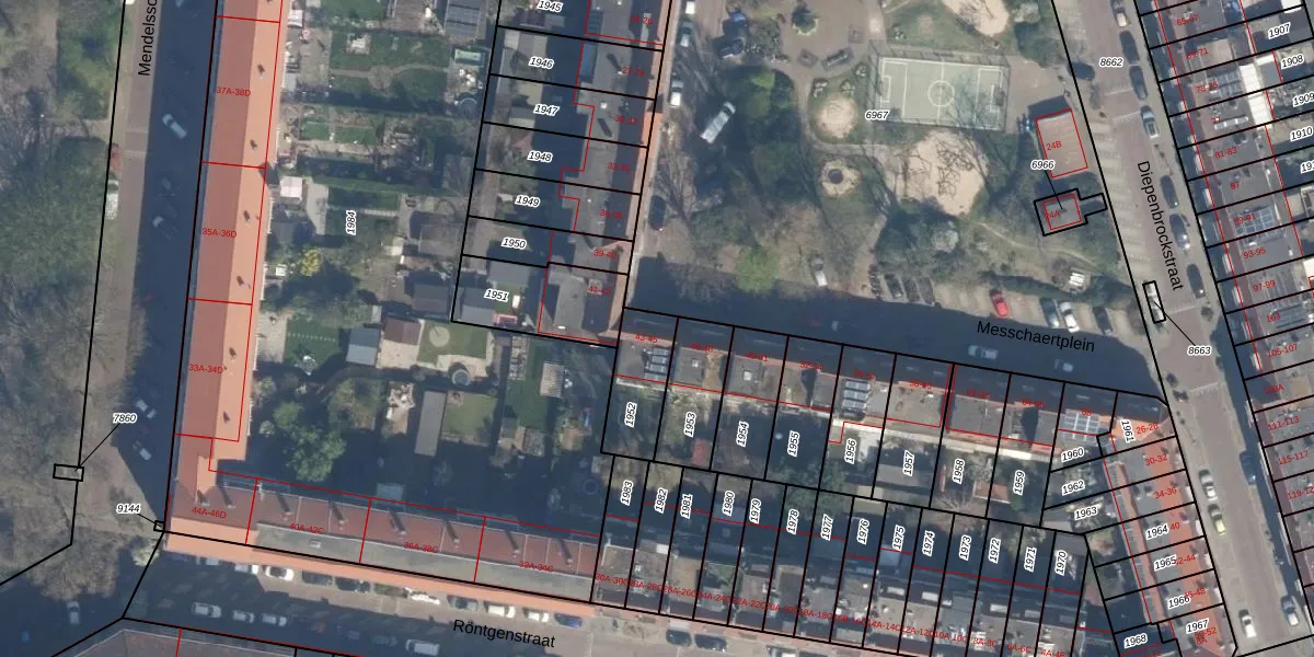 Het perceel waarop Messchaertplein 45 staat heeft een oppervlakte van 193 m². Dit is een middelgroot perceel. De perceeloppervlakte wordt geregistreerd door het Kadaster. Gedetailleerde informatie over de maten van dit perceel kunt u vinden in het rapport Kadastrale kaart met maatvoering van Messchaertplein 45.