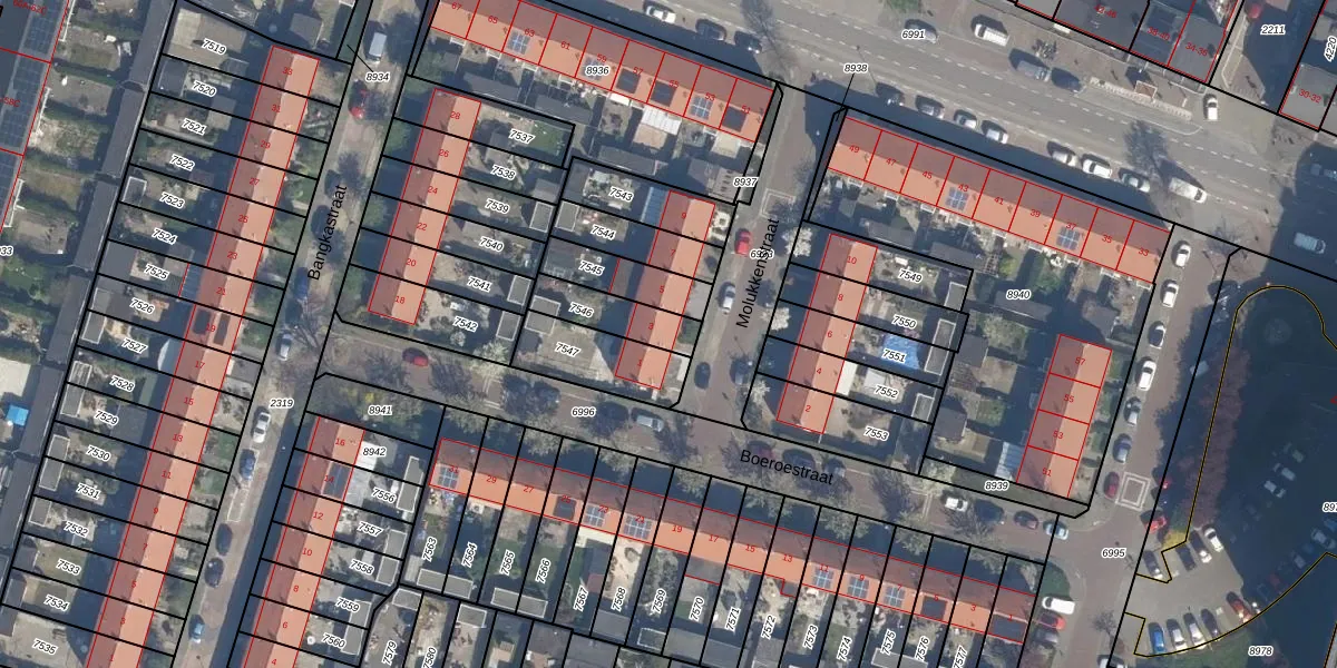 Gebruik de zoekbalk of klik op een perceel voor informatie over de adressen binnen dit perceel.