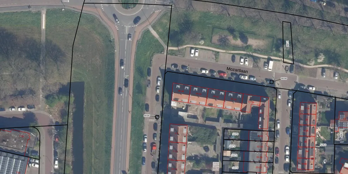 Het perceel waarop Mozartlaan 48 staat heeft een oppervlakte van 4425 m². Dit is een zeer groot perceel. De perceeloppervlakte wordt geregistreerd door het Kadaster. Gedetailleerde informatie over de maten van dit perceel kunt u vinden in het rapport Kadastrale kaart met maatvoering van Mozartlaan 48.