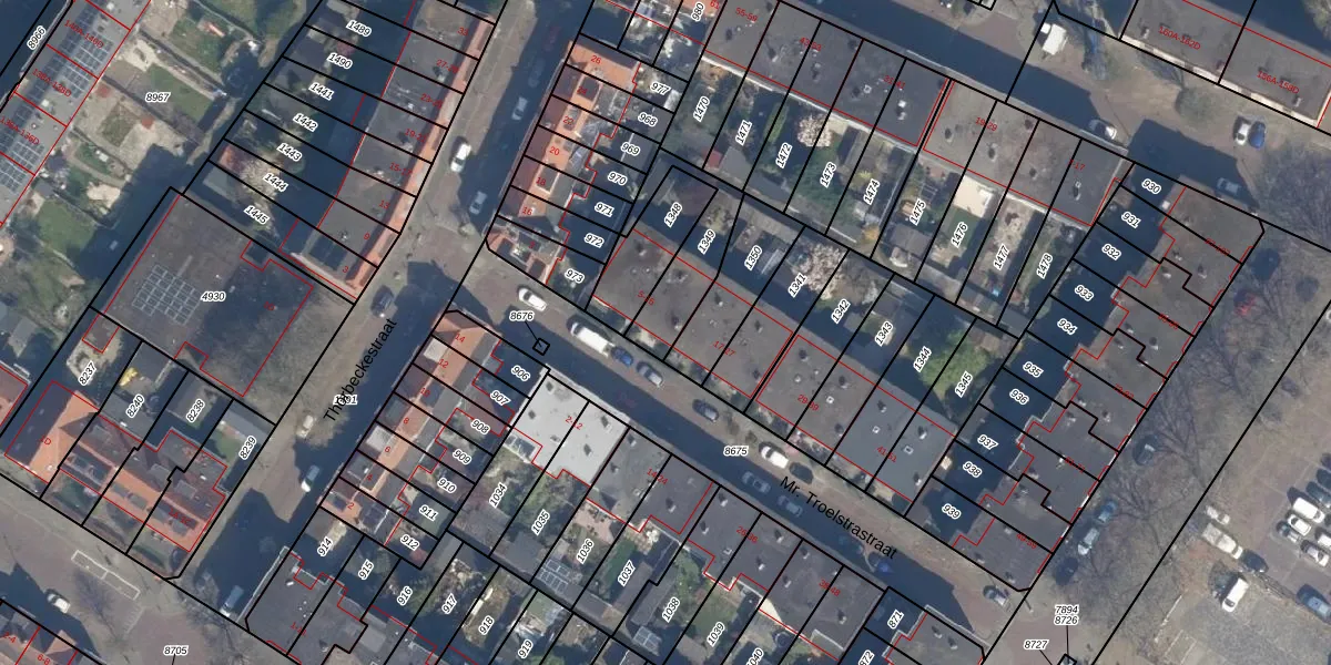 Mr. Troelstrastraat 13 is gelegen op kadastraal perceel VDG00D1349. Deze kadastrale aanduiding is uniek en wordt gebruikt door het Kadaster om eigendomsrechten en andere zakelijke rechten vast te leggen. Het perceel maakt onderdeel uit van de kadastrale gemeente Vlaardingen.