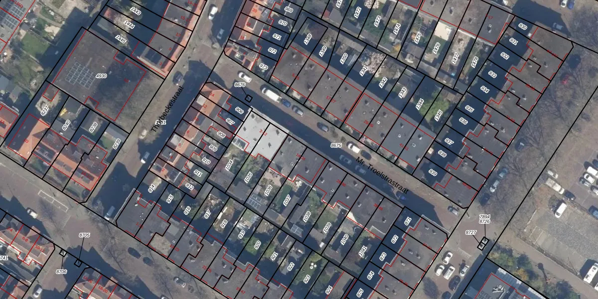 Mr. Troelstrastraat 16 is gelegen op kadastraal perceel VDG00D1036. Deze kadastrale aanduiding is uniek en wordt gebruikt door het Kadaster om eigendomsrechten en andere zakelijke rechten vast te leggen. Het perceel maakt onderdeel uit van de kadastrale gemeente Vlaardingen.