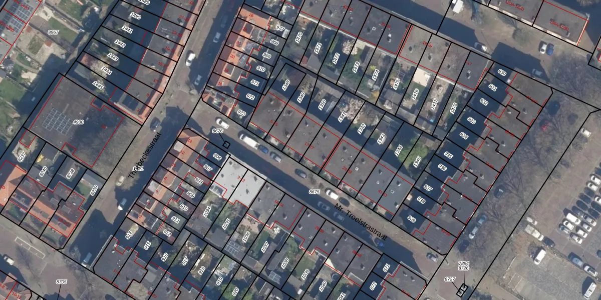 Mr. Troelstrastraat 19 is gelegen op kadastraal perceel VDG00D1350. Deze kadastrale aanduiding is uniek en wordt gebruikt door het Kadaster om eigendomsrechten en andere zakelijke rechten vast te leggen. Het perceel maakt onderdeel uit van de kadastrale gemeente Vlaardingen.