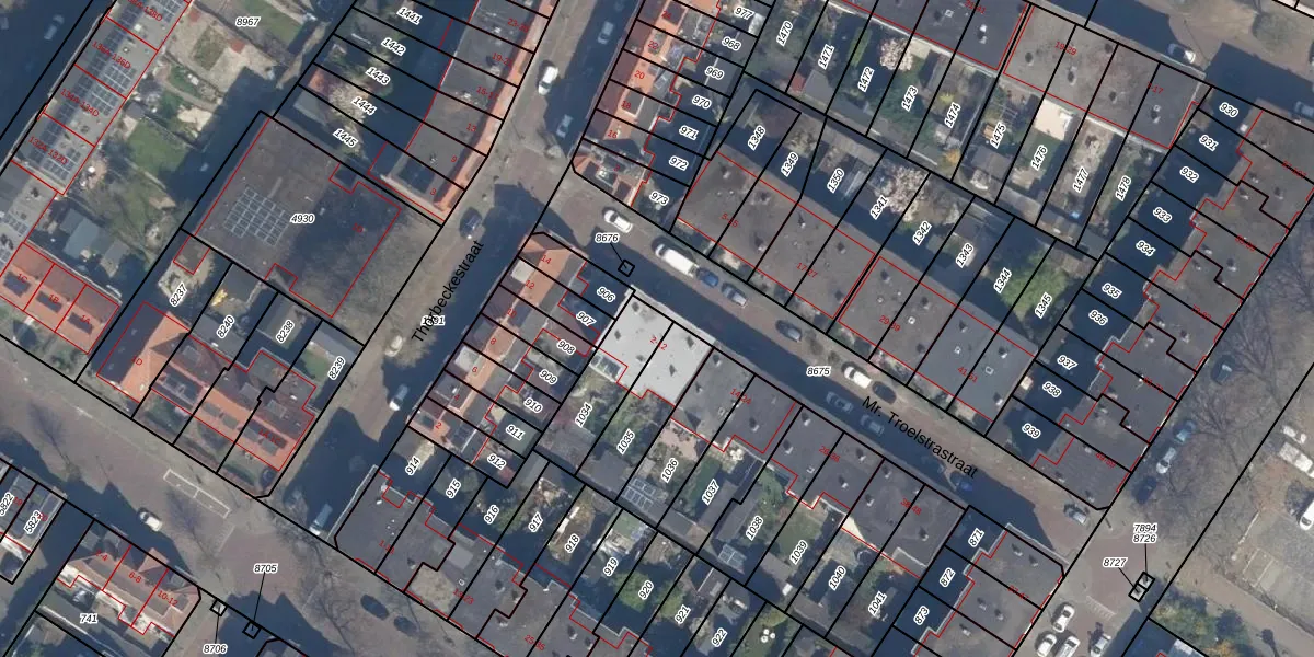 Mr. Troelstrastraat 6 is gelegen op kadastraal perceel VDG00D1034. Deze kadastrale aanduiding is uniek en wordt gebruikt door het Kadaster om eigendomsrechten en andere zakelijke rechten vast te leggen. Het perceel maakt onderdeel uit van de kadastrale gemeente Vlaardingen.