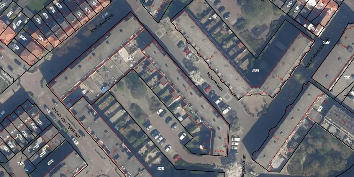 Het adres is gelegen op perceel 5977 in de sectie D en de kadastrale gemeente Vlaardingen. De kadastrale aanduiding is aldus VDG00-D-5977. Het perceel is met 2938 m² relatief groot. Het gemiddelde ligt in de kadastrale gemeente Vlaardingen op 1372,24 m². De grootste perceeloppervlakte in de kadastrale gemeente is 1,02 km². De kleinste oppervlakte bedraagt 0 m². Op het perceel zijn 52 adressen aanwezig. De huidige grenzen van het perceel zijn digitaal in de Basisregistratie Kadaster (BRK) geregistreerd op 28-04-2010.