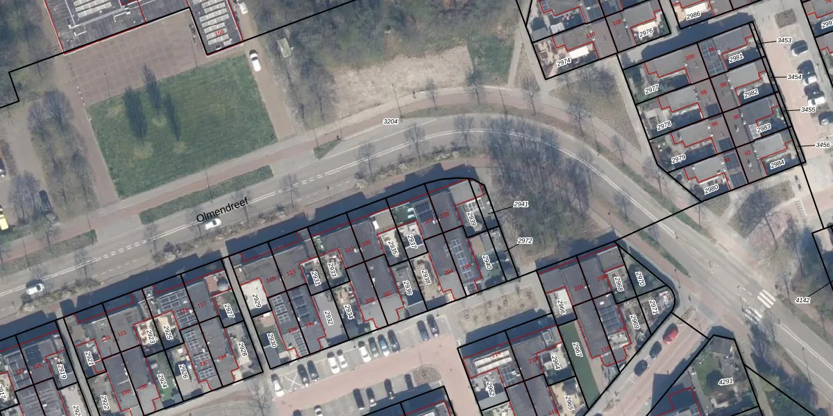 Olmendreef 107 is gelegen op kadastraal perceel VDG00K2937. Deze kadastrale aanduiding is uniek en wordt gebruikt door het Kadaster om eigendomsrechten en andere zakelijke rechten vast te leggen. Het perceel maakt onderdeel uit van de kadastrale gemeente Vlaardingen.