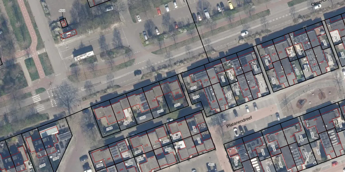 Olmendreef 133 is gelegen op kadastraal perceel VDG00K2912. Deze kadastrale aanduiding is uniek en wordt gebruikt door het Kadaster om eigendomsrechten en andere zakelijke rechten vast te leggen. Het perceel maakt onderdeel uit van de kadastrale gemeente Vlaardingen.