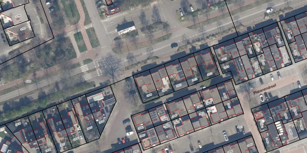Gebruik de zoekbalk of klik op een perceel voor informatie over de adressen binnen dit perceel.