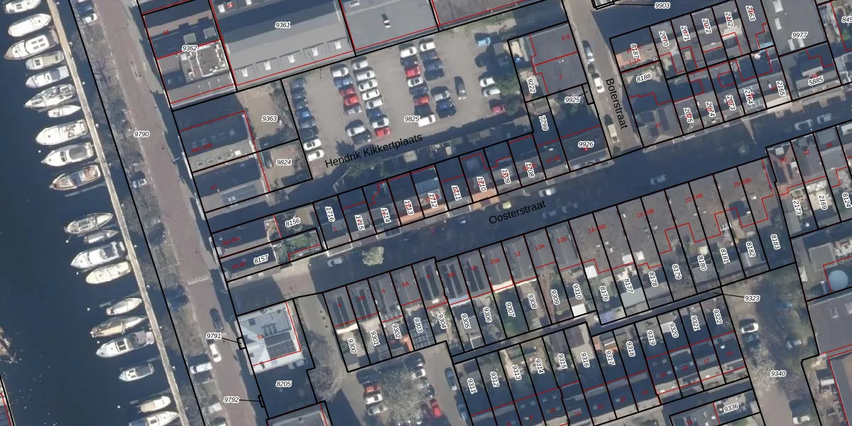 Oosterstraat 17 is gelegen op kadastraal perceel VDG00B1712. Deze kadastrale aanduiding is uniek en wordt gebruikt door het Kadaster om eigendomsrechten en andere zakelijke rechten vast te leggen. Het perceel maakt onderdeel uit van de kadastrale gemeente Vlaardingen.