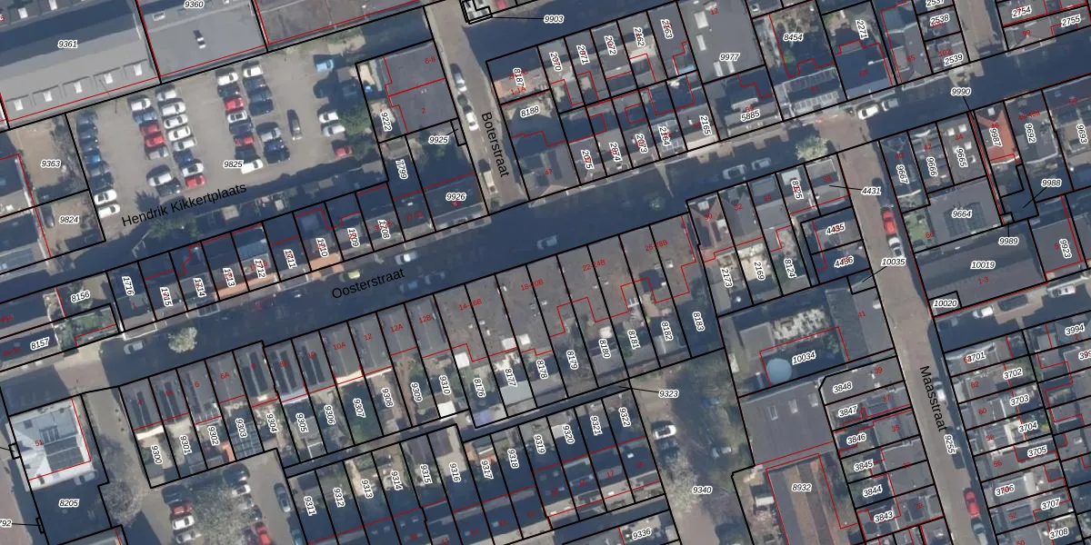 Oosterstraat 20-A is gelegen op kadastraal perceel VDG00B8179. Deze kadastrale aanduiding is uniek en wordt gebruikt door het Kadaster om eigendomsrechten en andere zakelijke rechten vast te leggen. Het perceel maakt onderdeel uit van de kadastrale gemeente Vlaardingen.