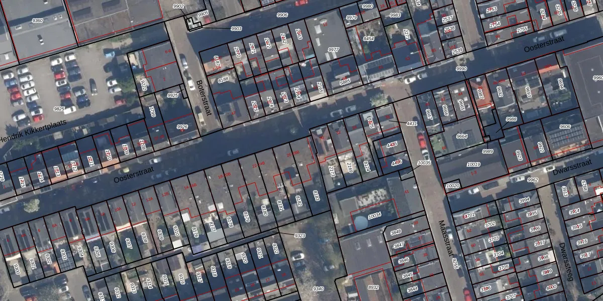 Oosterstraat 28-B is gelegen op kadastraal perceel VDG00B8183. Deze kadastrale aanduiding is uniek en wordt gebruikt door het Kadaster om eigendomsrechten en andere zakelijke rechten vast te leggen. Het perceel maakt onderdeel uit van de kadastrale gemeente Vlaardingen.