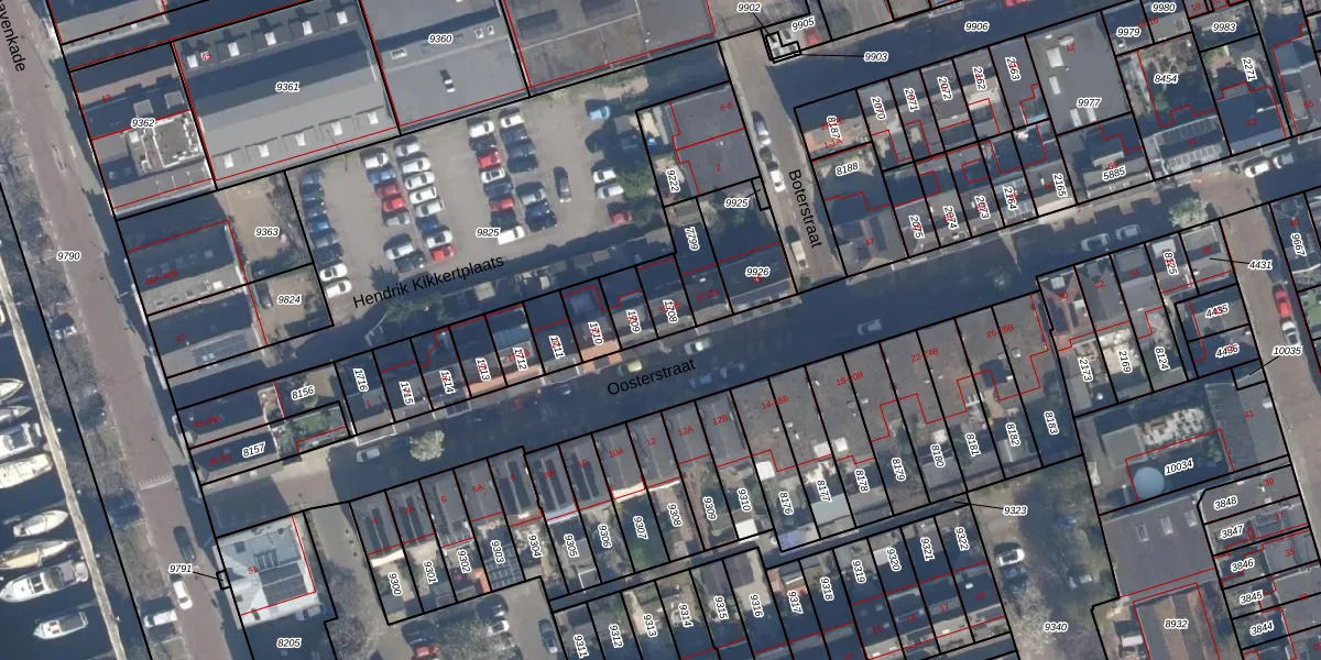 Oosterstraat 33 is gelegen op kadastraal perceel VDG00B1708. Deze kadastrale aanduiding is uniek en wordt gebruikt door het Kadaster om eigendomsrechten en andere zakelijke rechten vast te leggen. Het perceel maakt onderdeel uit van de kadastrale gemeente Vlaardingen.