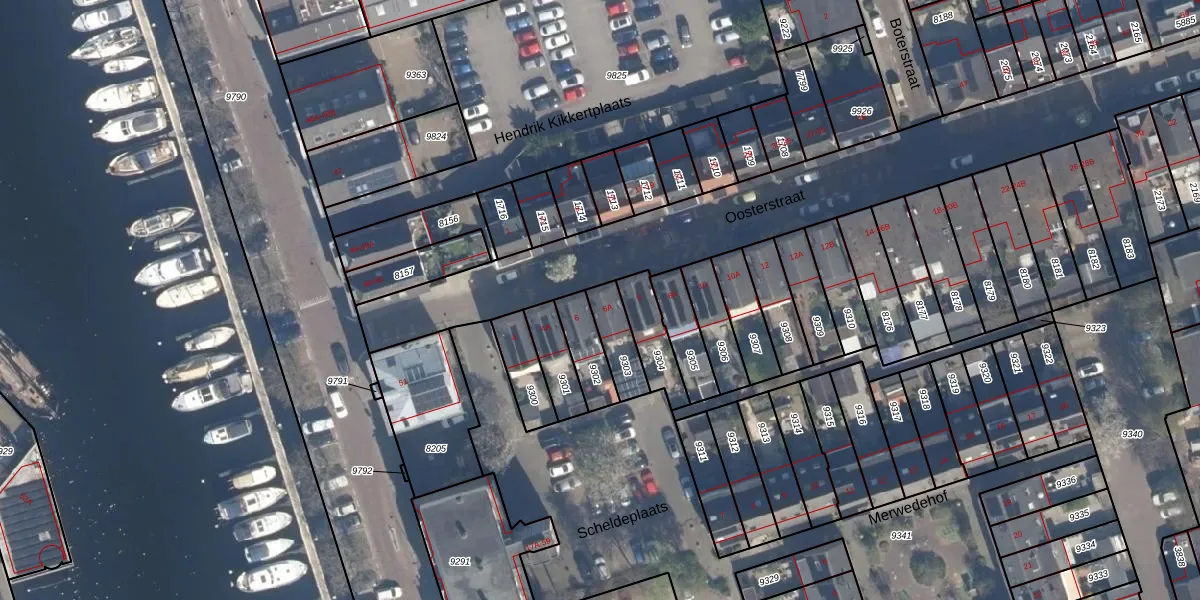 Oosterstraat 6-A is gelegen op kadastraal perceel VDG00B9303. Deze kadastrale aanduiding is uniek en wordt gebruikt door het Kadaster om eigendomsrechten en andere zakelijke rechten vast te leggen. Het perceel maakt onderdeel uit van de kadastrale gemeente Vlaardingen.