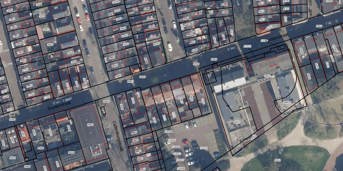 Oosterstraat 76 is gelegen op kadastraal perceel VDG00B9827. Deze kadastrale aanduiding is uniek en wordt gebruikt door het Kadaster om eigendomsrechten en andere zakelijke rechten vast te leggen. Het perceel maakt onderdeel uit van de kadastrale gemeente Vlaardingen.