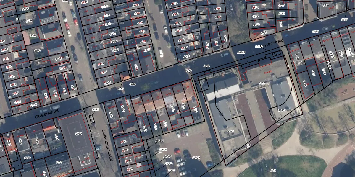Oosterstraat 82 is gelegen op kadastraal perceel VDG00B9826. Deze kadastrale aanduiding is uniek en wordt gebruikt door het Kadaster om eigendomsrechten en andere zakelijke rechten vast te leggen. Het perceel maakt onderdeel uit van de kadastrale gemeente Vlaardingen.