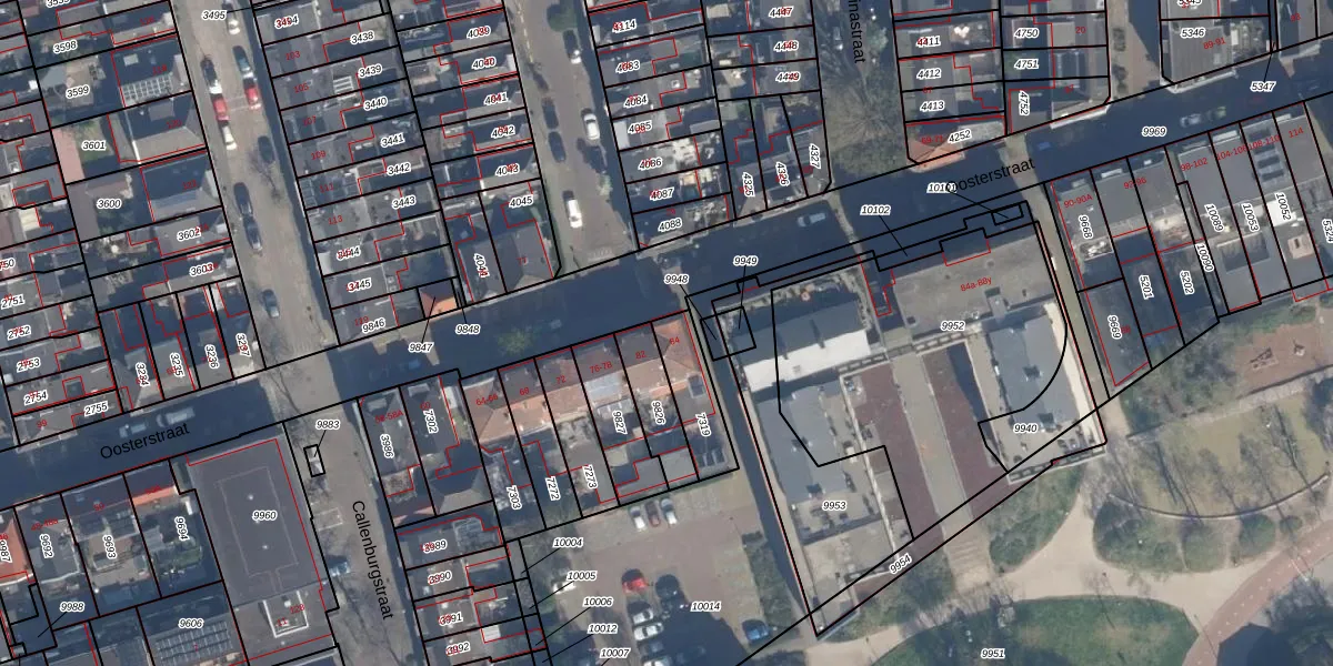 Oosterstraat 84 is gelegen op kadastraal perceel VDG00B7319. Deze kadastrale aanduiding is uniek en wordt gebruikt door het Kadaster om eigendomsrechten en andere zakelijke rechten vast te leggen. Het perceel maakt onderdeel uit van de kadastrale gemeente Vlaardingen.