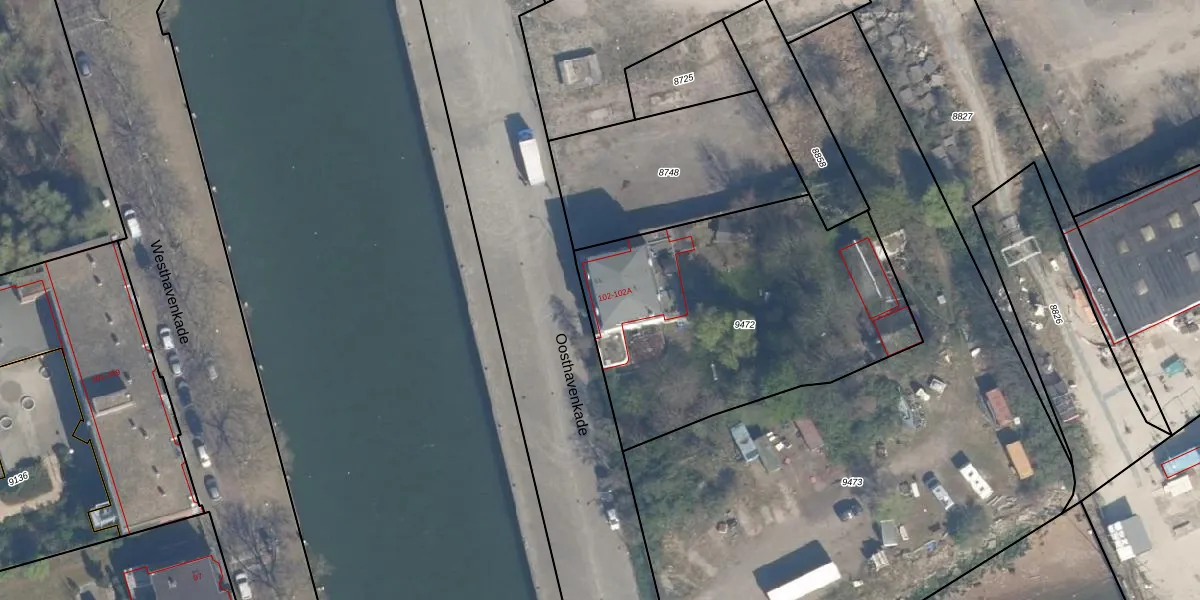 Het perceel waarop Oosthavenkade 102 staat heeft een oppervlakte van 1555 m². Dit is een zeer groot perceel. De perceeloppervlakte wordt geregistreerd door het Kadaster. Gedetailleerde informatie over de maten van dit perceel kunt u vinden in het rapport Kadastrale kaart met maatvoering van Oosthavenkade 102.