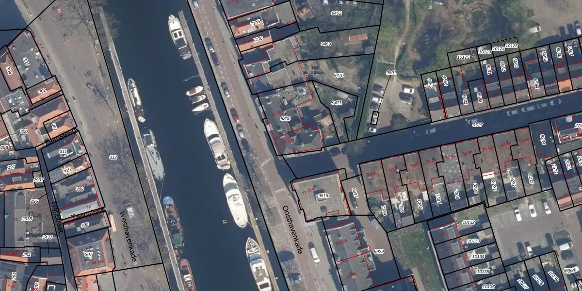 Het perceel waarop Oosthavenkade 20-A staat heeft een oppervlakte van 510 m². Dit is een groot perceel. De perceeloppervlakte wordt geregistreerd door het Kadaster. Gedetailleerde informatie over de maten van dit perceel kunt u vinden in het rapport Kadastrale kaart met maatvoering van Oosthavenkade 20-A.