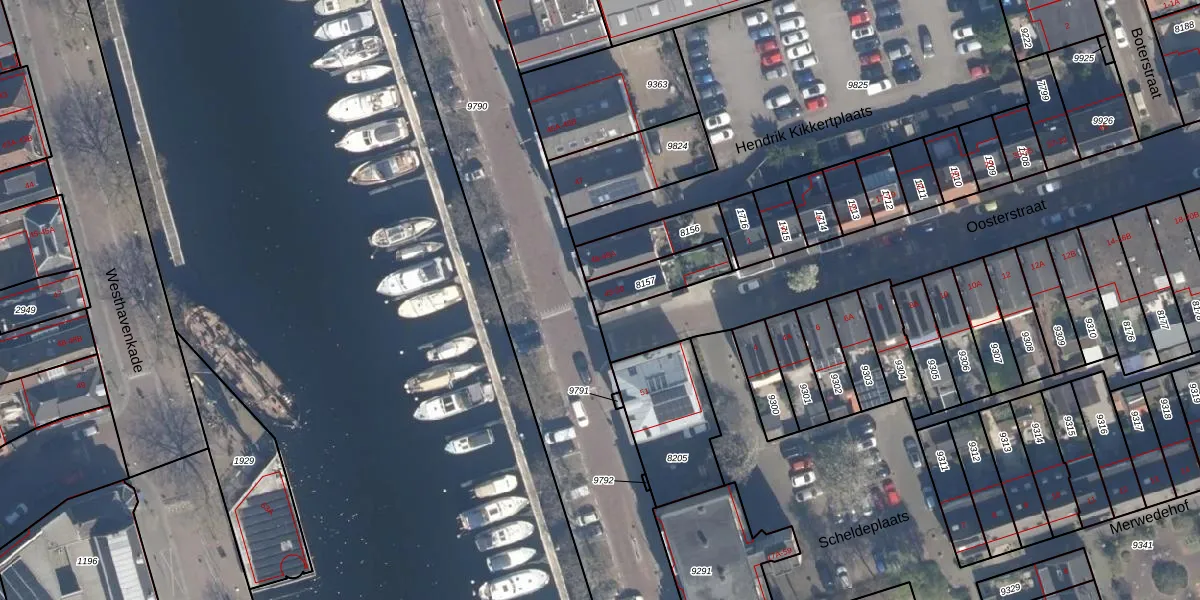 Oosthavenkade 50 is gelegen op kadastraal perceel VDG00B8157. Deze kadastrale aanduiding is uniek en wordt gebruikt door het Kadaster om eigendomsrechten en andere zakelijke rechten vast te leggen. Het perceel maakt onderdeel uit van de kadastrale gemeente Vlaardingen.