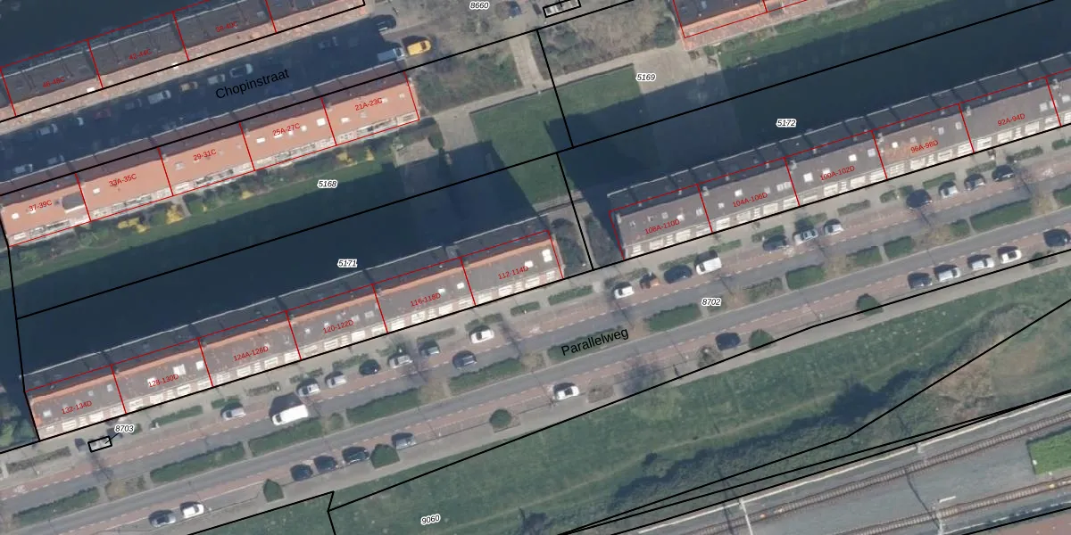 Parallelweg 112-C is gelegen op kadastraal perceel VDG00D5171. Deze kadastrale aanduiding is uniek en wordt gebruikt door het Kadaster om eigendomsrechten en andere zakelijke rechten vast te leggen. Het perceel maakt onderdeel uit van de kadastrale gemeente Vlaardingen.