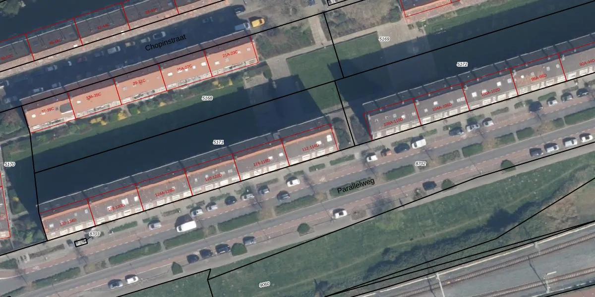 Parallelweg 114-D is gelegen op kadastraal perceel VDG00D5171. Deze kadastrale aanduiding is uniek en wordt gebruikt door het Kadaster om eigendomsrechten en andere zakelijke rechten vast te leggen. Het perceel maakt onderdeel uit van de kadastrale gemeente Vlaardingen.