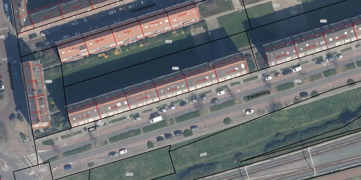 Parallelweg 120-B is gelegen op kadastraal perceel VDG00D5171. Deze kadastrale aanduiding is uniek en wordt gebruikt door het Kadaster om eigendomsrechten en andere zakelijke rechten vast te leggen. Het perceel maakt onderdeel uit van de kadastrale gemeente Vlaardingen.