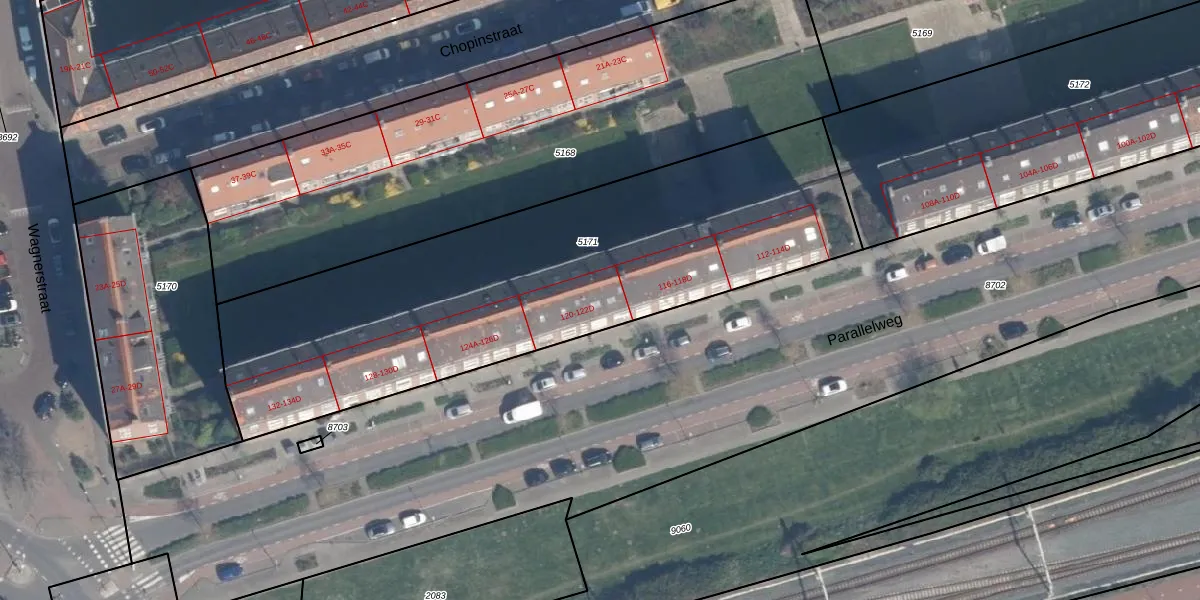 Parallelweg 120-D is gelegen op kadastraal perceel VDG00D5171. Deze kadastrale aanduiding is uniek en wordt gebruikt door het Kadaster om eigendomsrechten en andere zakelijke rechten vast te leggen. Het perceel maakt onderdeel uit van de kadastrale gemeente Vlaardingen.
