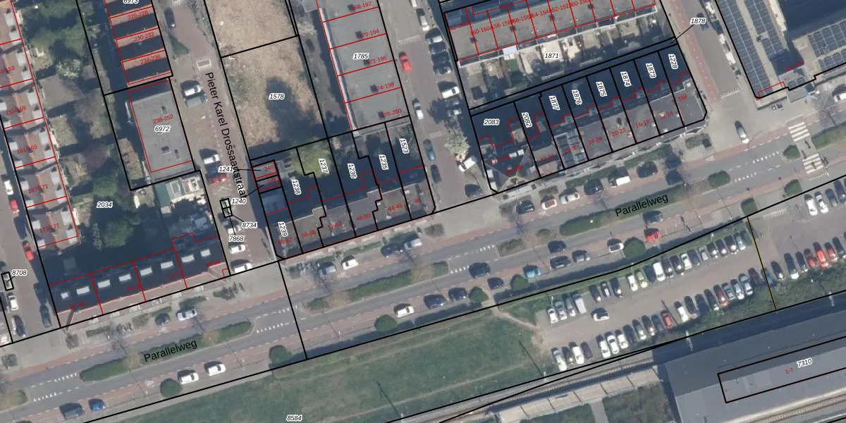 Parallelweg 40 is gelegen op kadastraal perceel VDG00M1523. Deze kadastrale aanduiding is uniek en wordt gebruikt door het Kadaster om eigendomsrechten en andere zakelijke rechten vast te leggen. Het perceel maakt onderdeel uit van de kadastrale gemeente Vlaardingen.