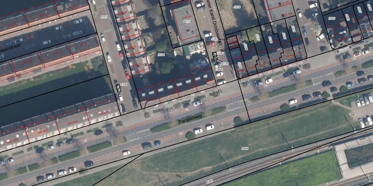 Parallelweg 72 is gelegen op kadastraal perceel VDG00D2034. Deze kadastrale aanduiding is uniek en wordt gebruikt door het Kadaster om eigendomsrechten en andere zakelijke rechten vast te leggen. Het perceel maakt onderdeel uit van de kadastrale gemeente Vlaardingen.