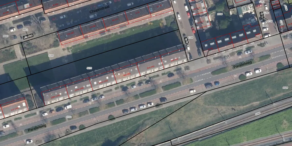 Parallelweg 94-A is gelegen op kadastraal perceel VDG00D5172. Deze kadastrale aanduiding is uniek en wordt gebruikt door het Kadaster om eigendomsrechten en andere zakelijke rechten vast te leggen. Het perceel maakt onderdeel uit van de kadastrale gemeente Vlaardingen.
