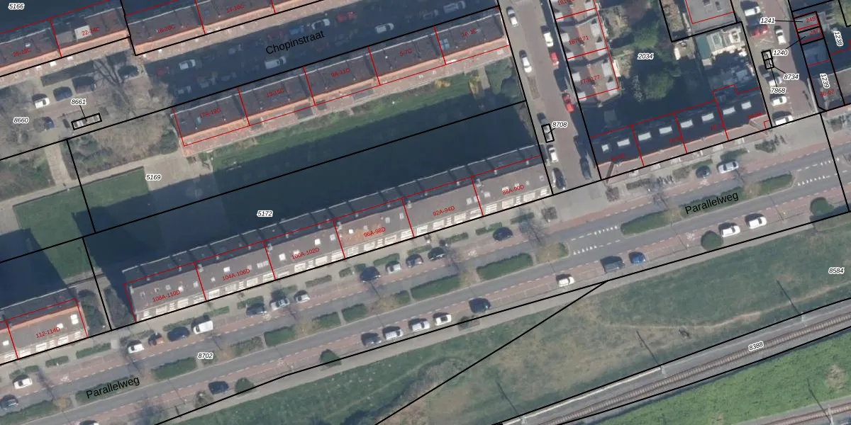 Parallelweg 94-D is gelegen op kadastraal perceel VDG00D5172. Deze kadastrale aanduiding is uniek en wordt gebruikt door het Kadaster om eigendomsrechten en andere zakelijke rechten vast te leggen. Het perceel maakt onderdeel uit van de kadastrale gemeente Vlaardingen.