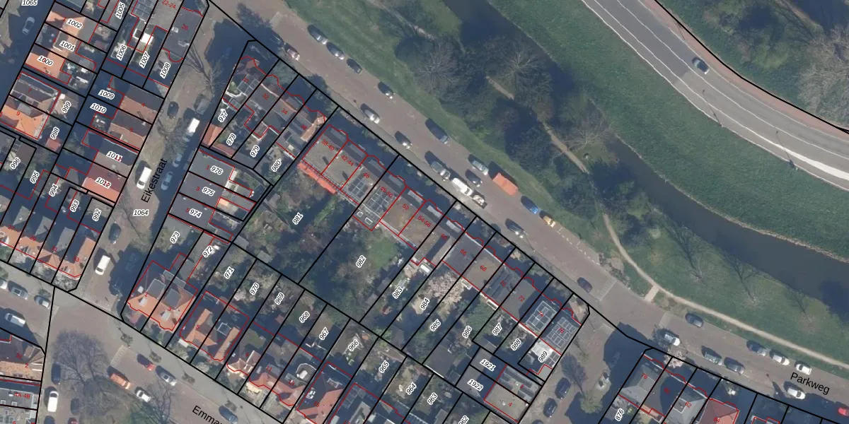 Parkweg 54 is gelegen op kadastraal perceel VDG00M982. Deze kadastrale aanduiding is uniek en wordt gebruikt door het Kadaster om eigendomsrechten en andere zakelijke rechten vast te leggen. Het perceel maakt onderdeel uit van de kadastrale gemeente Vlaardingen.