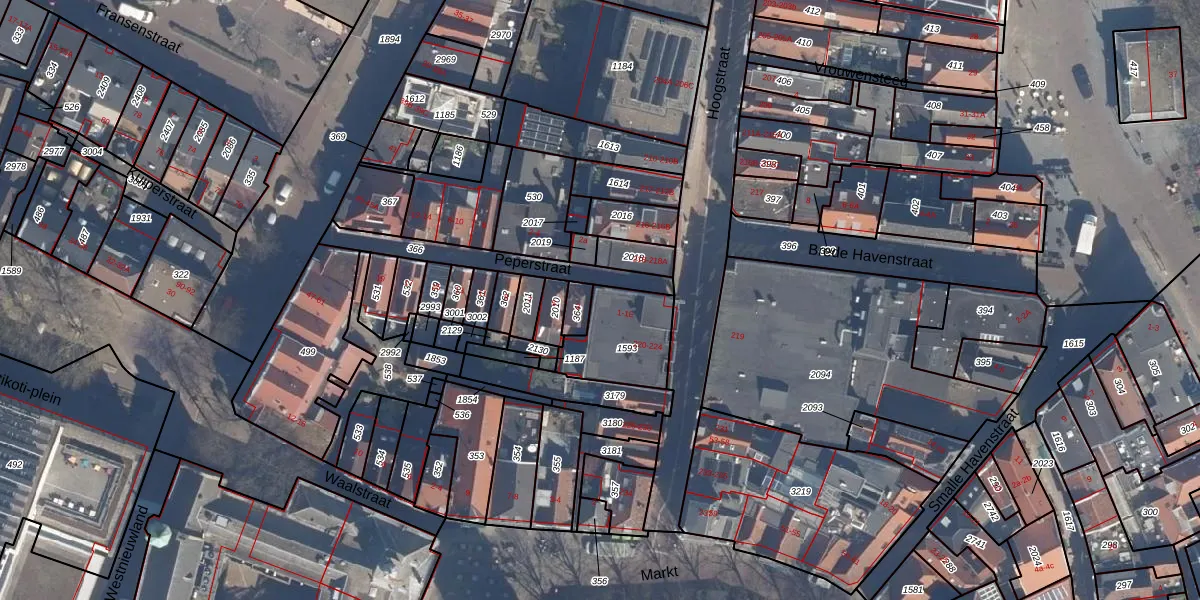 Peperstraat 1-B is gelegen op kadastraal perceel VDG00M1593. Deze kadastrale aanduiding is uniek en wordt gebruikt door het Kadaster om eigendomsrechten en andere zakelijke rechten vast te leggen. Het perceel maakt onderdeel uit van de kadastrale gemeente Vlaardingen.
