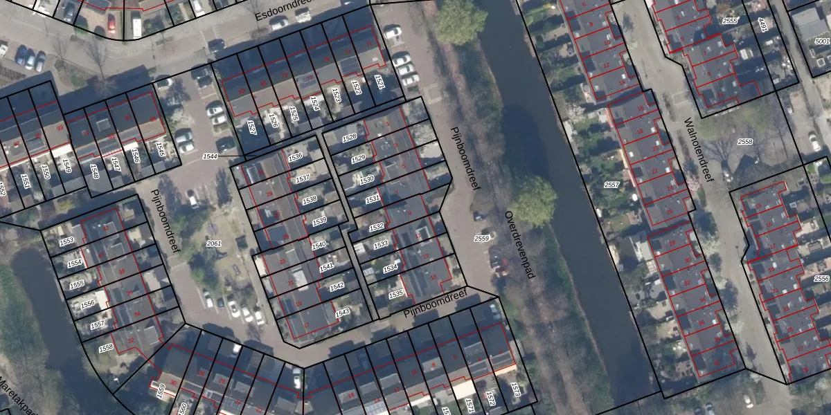 Pijnboomdreef 9 is gelegen op kadastraal perceel VDG00K1532. Deze kadastrale aanduiding is uniek en wordt gebruikt door het Kadaster om eigendomsrechten en andere zakelijke rechten vast te leggen. Het perceel maakt onderdeel uit van de kadastrale gemeente Vlaardingen.