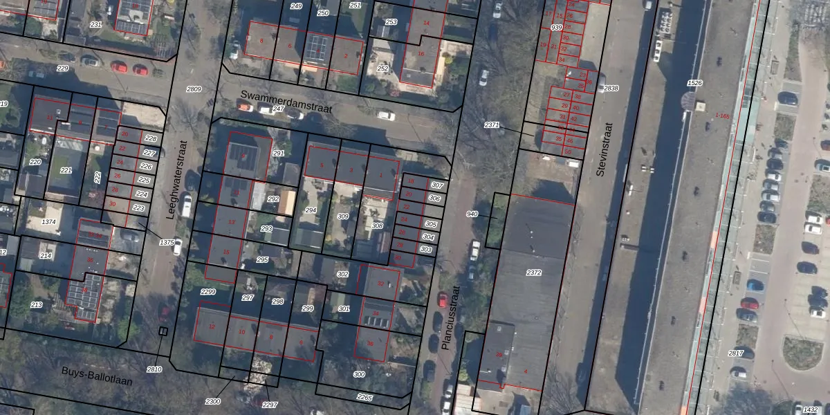 Het perceel waarop Planciusstraat 22 staat heeft een oppervlakte van 347 m². Dit is een groot perceel. De perceeloppervlakte wordt geregistreerd door het Kadaster. Gedetailleerde informatie over de maten van dit perceel kunt u vinden in het rapport Kadastrale kaart met maatvoering van Planciusstraat 22.