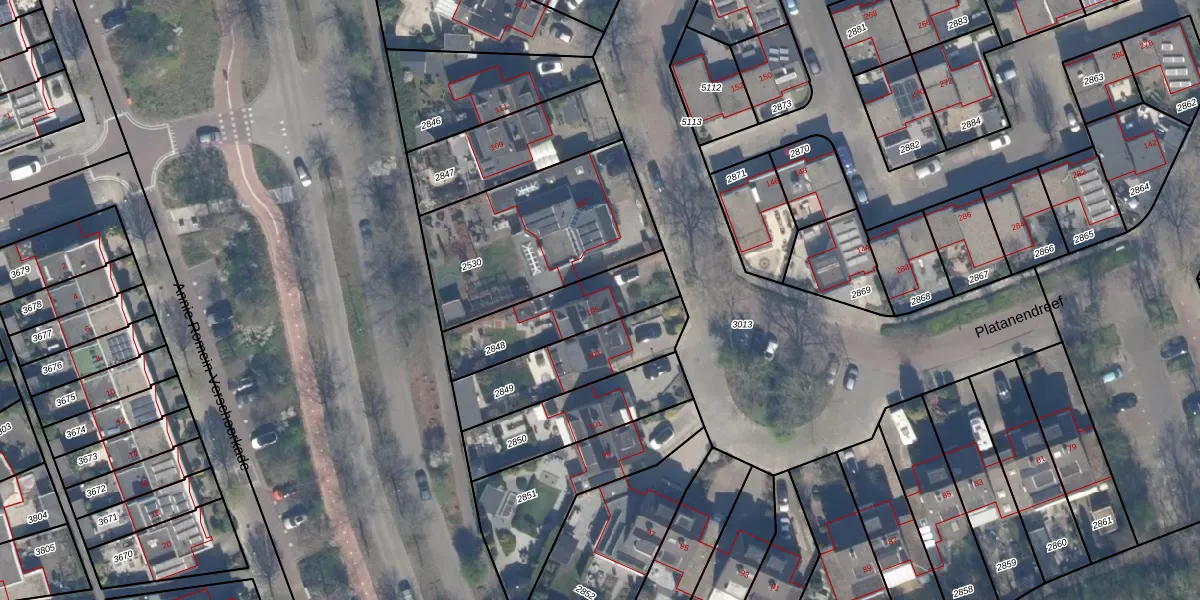 Gebruik de zoekbalk of klik op een perceel voor informatie over de adressen binnen dit perceel.